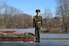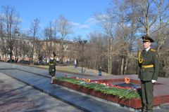 28 апреля у мемориального комплекса «Братская могила и могила Неизвестного солдата с Вечным огнём Славы» в Петрозаводске подвели итоги республиканского конкурса «Лучшая смена на Посту № 1». С приветственными словами в адрес участников выступили Министр по делам молодежи, физической культуре и спорту Республики Карелия Александр Воронов, инспектор войск в Западном военном округе, генерал-майор запаса Виктор Спиридонович Константинов и председатель общественной организации «Жители блокадного Ленинграда г. Петрозаводска» Вера Александровна Ермакова.