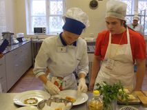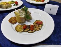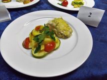 В течение 3 часов необходимо было выполнить следующее конкурсное задание: приготовить 2 порции основного горячего блюда из рыбы (Рыба фаршированная грибами со сливочным соусом и гарниром из жареных овощей).