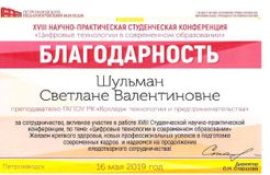 16 мая 2019 года на базе Петрозаводского педагогического колледжа состоялась XVIII научно-практическая студенческая конференция «Цифровые технологии в современном образовании», проводимая с целью формирования и совершенствования общих и профессиональных компетенций обучающихся, развития профессионально значимых исследовательских умений и современного стиля научного мышления.