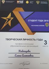 Елена Кабанцева, студентка кулинарного отделения, заняла 3 место в номинации «Творческая личность года профессиональных образовательных организаций».