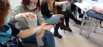 В завершении встречи девушки попрактиковались в наложении тугой повязки.