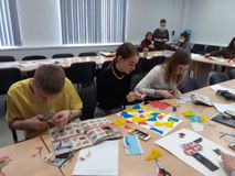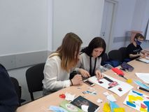 В ходе урока преподаватель познакомила обучающихся с понятием "коллаж" и с творчеством художников-абстракционистов, привлекла внимание учащихся к выразительности простых форм. Во второй части урока студенты и гости выполняли практическую работу- создавали из предложенного материала свои коллажи и представляли их. Спасибо Наталье Сергеевне за интересное занятие!