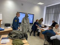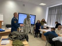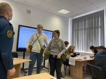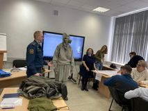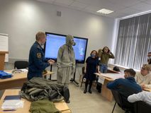 В рамках открытого урока главным специалистом отдела организации подготовки пожарно-спасательного спорта главного управления МЧС России по Республике Карелия Лушиным Юлианом Сергеевичем для студентов была проведена практическая тренировка по надеванию общевойскового защитного комплекта (ОЗК).