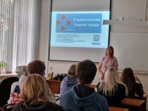 15 сентября 2022 года специалист студенческий биржи труда Сергеева Анна Алексеевна представила студентам презентацию о работе биржи, о возможностях трудоустройства для студентов и выпускников, а также рассказала об акции по использованию Цифрового помощника для выбора профессии.