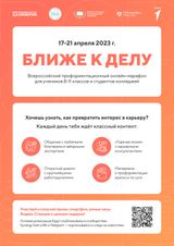 С 17 по 21 апреля 2023 года в Республике Карелия пройдет Всероссийский профориентационный онлайн-марафон «Ближе к делу». Присоединиться смогут школьники 8-11 классов и студенты колледжей: участникам помогут выявить свои интересы и узнать, как их превратить в успешную карьеру.