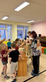 В декабре 2023 года педагоги и студенты-амбассадоры Колледжа технологии и предпринимательства проводят практические занятия в рамках образовательного модуля проекта с воспитанниками подготовительных групп. Дошкольники в интерактивной форме знакомятся с профессиями сферы обслуживания, отрабатывают практические навыки по профессиям «Продавец» и «Парикмахер».