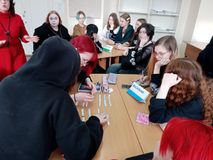 В рамках празднования даты, посвященной Международному дню родных языков, в группе 1ТИК по специальности "Технологии индустрии красоты" ФП "Профессионалитет" библиотекарь колледжа Малютина Ольга Юрьевна провела интеллектуальную игру «Родной язык – душа народа», целью которой были воспитание и уважение к культуре и традициям своего народа, пробуждение интереса у студентов к изучению и сохранению родного языка.