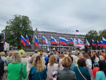 Подъем российского флага обычно сопровождается исполнением государственного гимна России, что обычно происходит в рамках крупных государственных мероприятий с участием первых лиц государства, эта церемония знаменует величие государства и его истории.