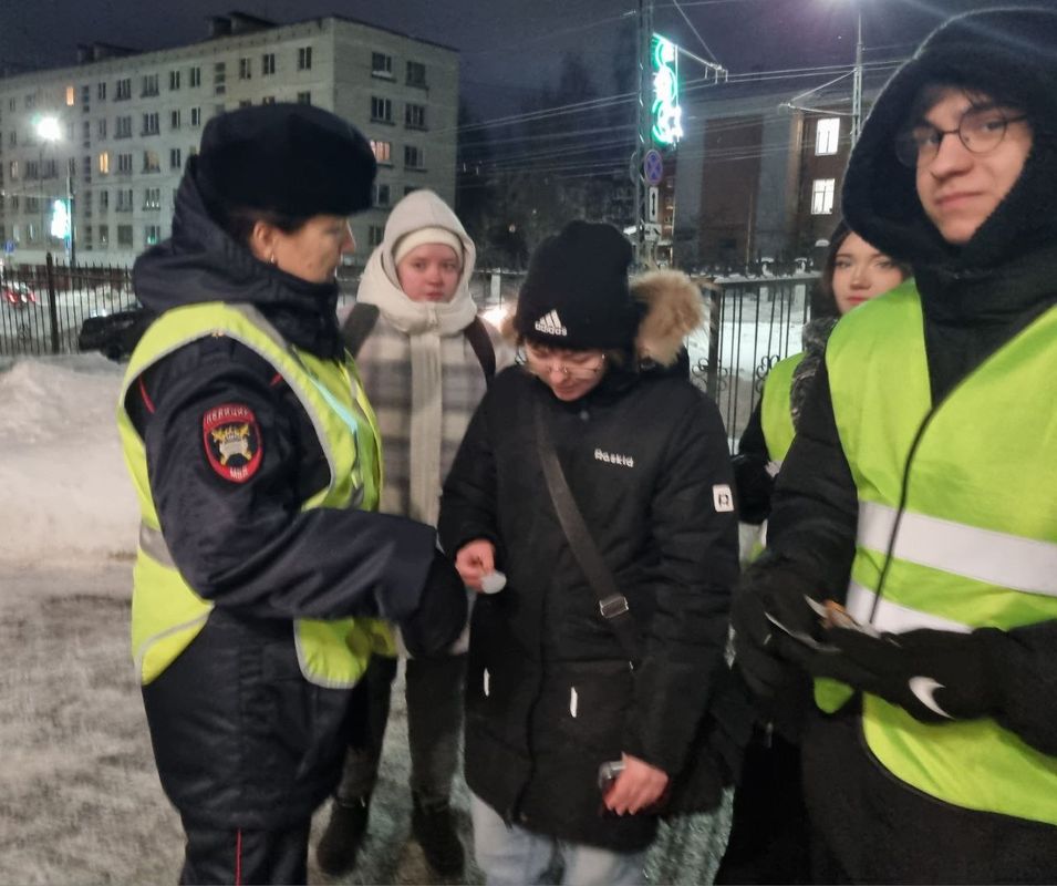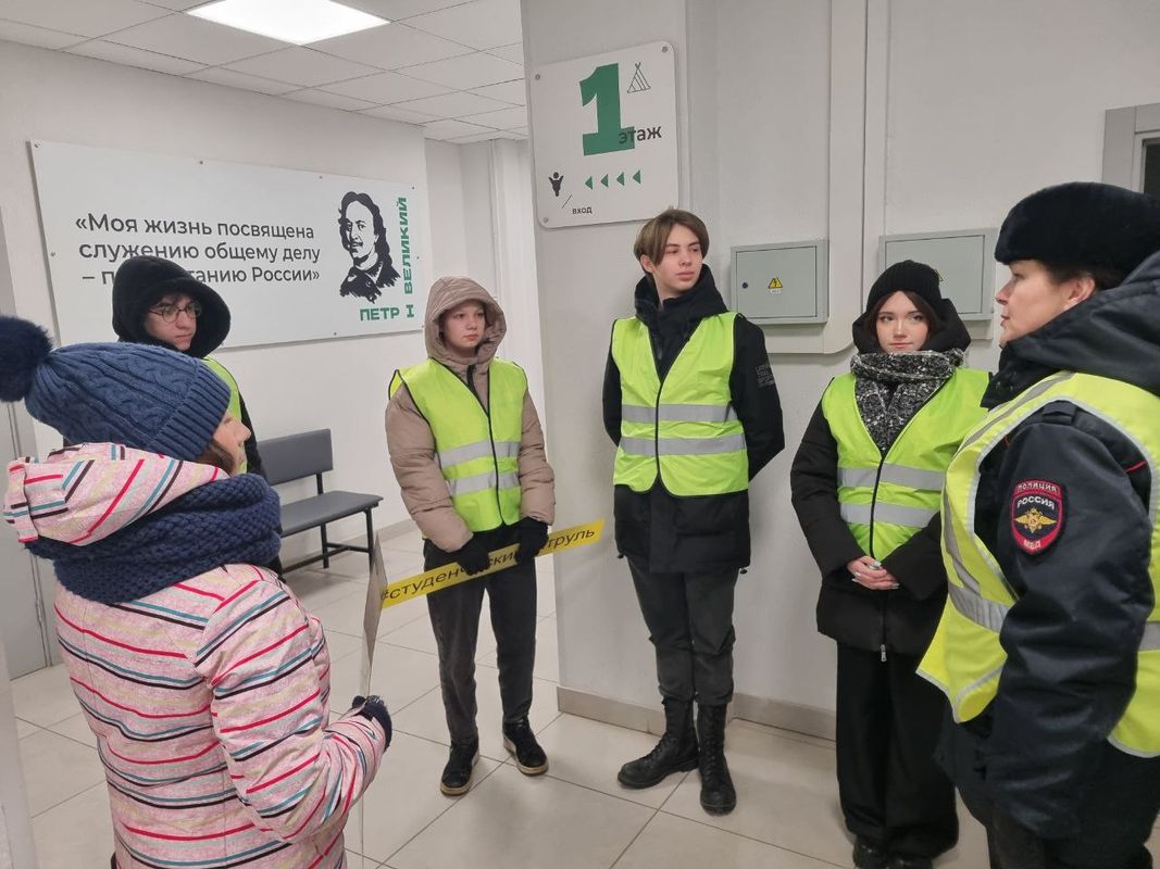 Студенты Колледжа технологии и предпринимательства с заместителем директора Ермаковой А.В., преподавателем Павловой Т.А. и Кравченко Л.С., начальником отдела пропаганды БДД ГАИ г. Петрозаводска, поздравили студентов с праздником и напомнили о важности световозвращающих элементов, которые помогают сохранить жизнь пешеходам.