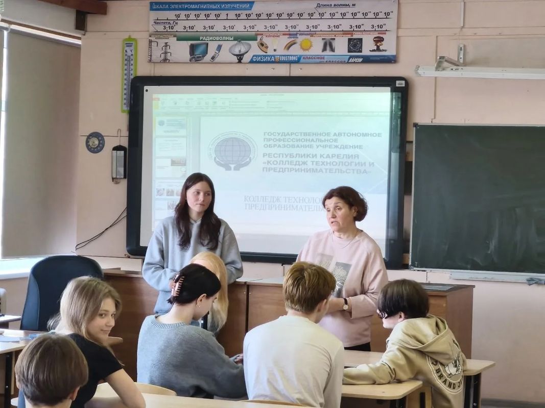 В рамках профориентации педагоги Рябчук Евгения Андреевна, Орлова Татьяна Евгеньевна и Шурпицкая Гулчира Реджеповна вместе с амбассадорами Баклушиной Софьей,Бошаковой Софьей и Бачиным Егором ( группа 2ТИК) подробно рассказали школьникам