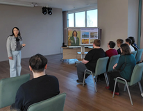 В начале экскурсии перед первокурсниками выступила менеджер по персоналу Влада, которая рассказала и показала презентацию о деятельности предприятия, его команде, планах и карьерной росте сотрудников.